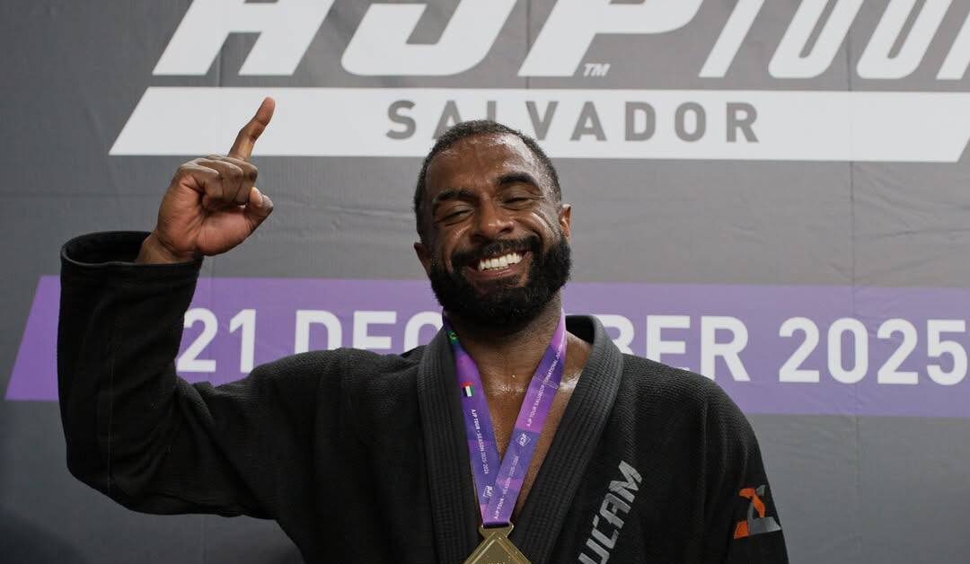 Artista baiano celebrou a vitória na AJP Tour e a promoção de faixa branca para azul após conquistar título no tatame em Salvador.