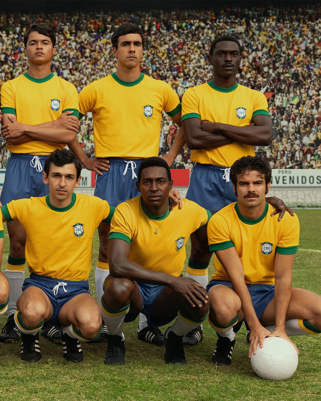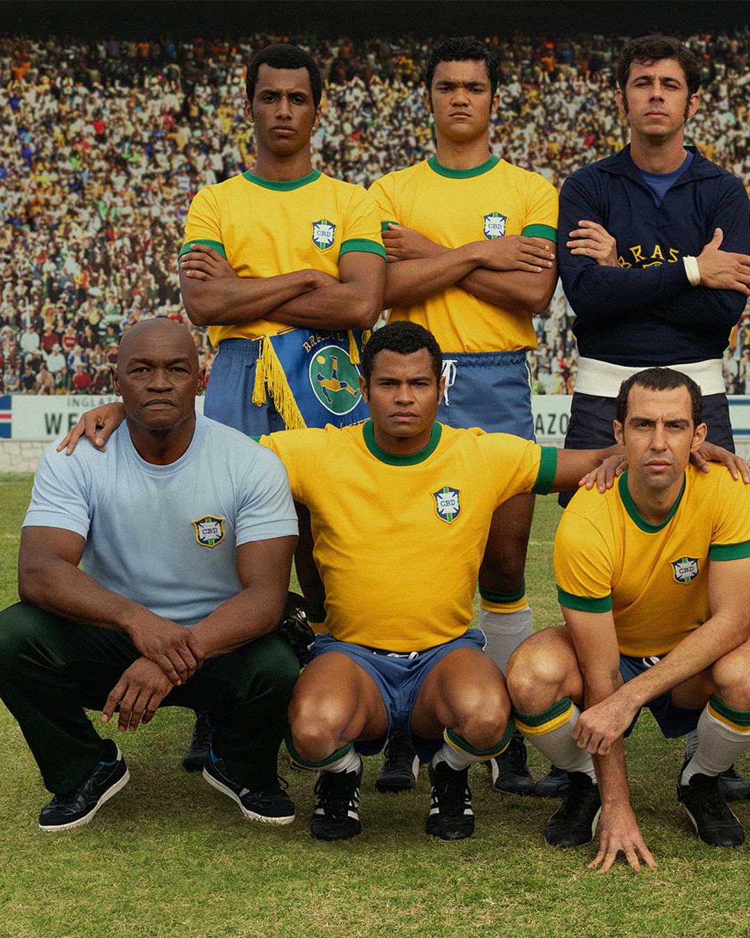 O material divulgado apresenta parte do elenco caracterizado como figuras centrais daquela seleção lendária. Lucas Agrícola interpreta Pelé, enquanto Rodrigo Santoro vive João Saldanha e Bruno Mazzeo dá vida a Zagallo. A série também traz personagens como Tostão, Félix, Carlos Alberto, Jairzinho, Gérson e Rivellino, representando os jogadores que formaram a base do time campeão. Produzida pela Netflix em parceria com a O2 Filmes, a minissérie tem estreia prevista ainda para 29 de maio na plataforma.